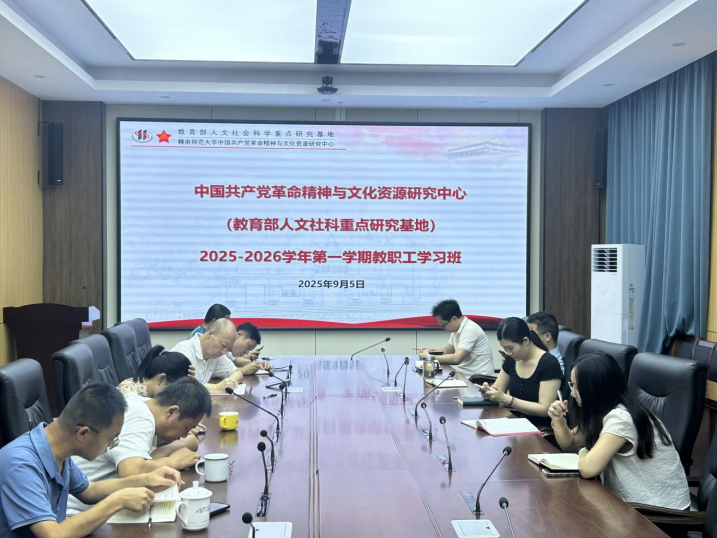 9月5日,中心举办新学期教职工学习班,深入开展理论学习,全面落实学校新学期工作部署,以良好的精神风貌开启新学期工作新篇章。中国共产党革命精神与文化资源研究中心(教育部人文社科重点研究基地)主任、《红色文化学刊》编辑部主任钟小明主持会议