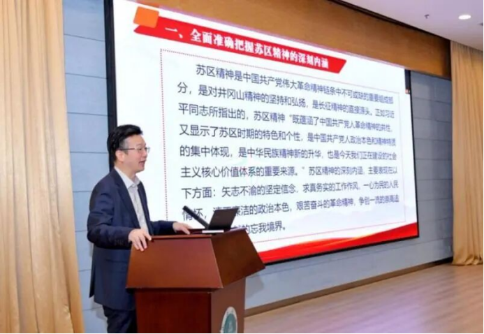 钟小明主任从苏区精神出发,深入剖析了其深刻内涵与形成发展过程。他指出,苏维埃政权作为中国历史上首个无产阶级政权,集中体现了中国共产党与人民群众的伟大首创精神。