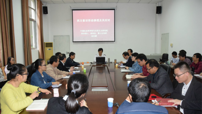习近平总书记强调指出“意识形态工作是党的一项极端重要的工作”。11月15日,中国社科院马克思主义研究院马克思主义中国化研究部主任金民卿研究员作客“苏区论坛”,就西方意识形态渗透及其应对作了一场精彩的学术报告。报告由副校长、基地主任邱小云教授主持。